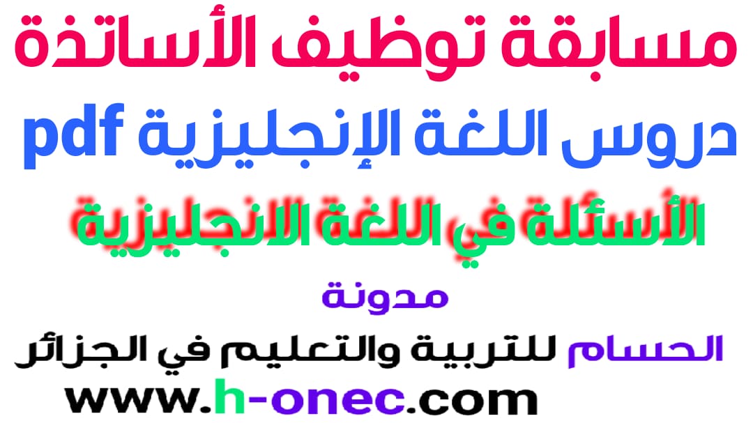 في اللغة الإنجليزية Questions لمسابقة توظيف الاساتذة التعليم المتوسط الثانوي 2021 تخصص اللغة الانجليزية، تجدون الدرس المقرر من وزارة التربية