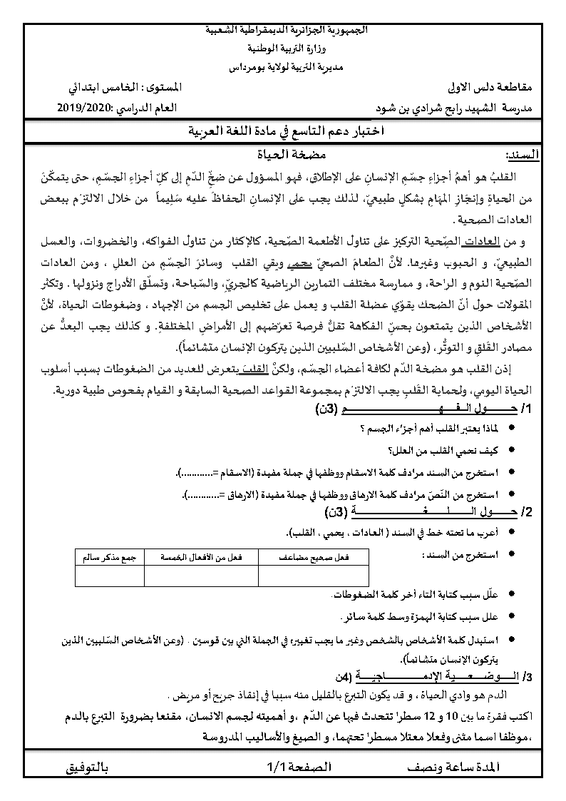 تحميل اختبار تقويم للفصل الثاني في اللغة العربية للسنة الخامسة ابتدائي الجيل الثاني موافق للمقطع الرابع 03