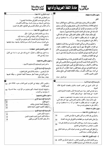 الموضوع المقترح 10 في اللغة العربية لشعبة آداب وفلسفة لشهادة البكالوريا مع التصحيح