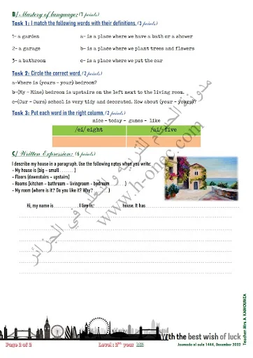 اختبارات السنة الثانية متوسط الفصل الاول في اللغة الانجليزية